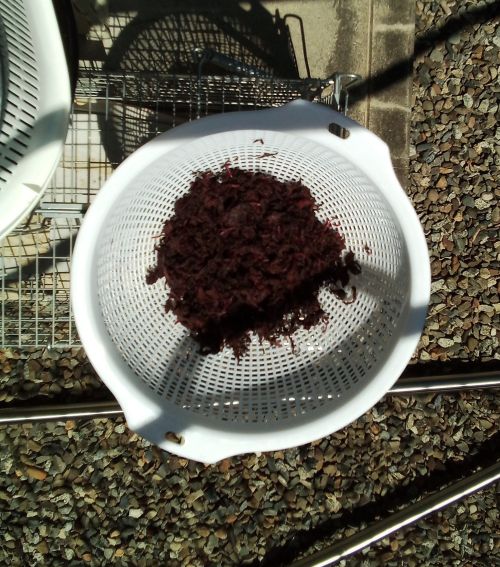 きれいな紫蘇の赤ですね。朱色ですかね。美味しそうな色です。