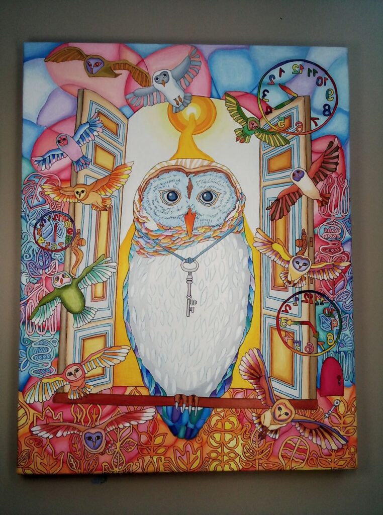昔水彩絵の具で描いた梟の絵があったのでその絵のアクリルバージョンを描いてみようと思い、先月から描き始めてようやく完成。